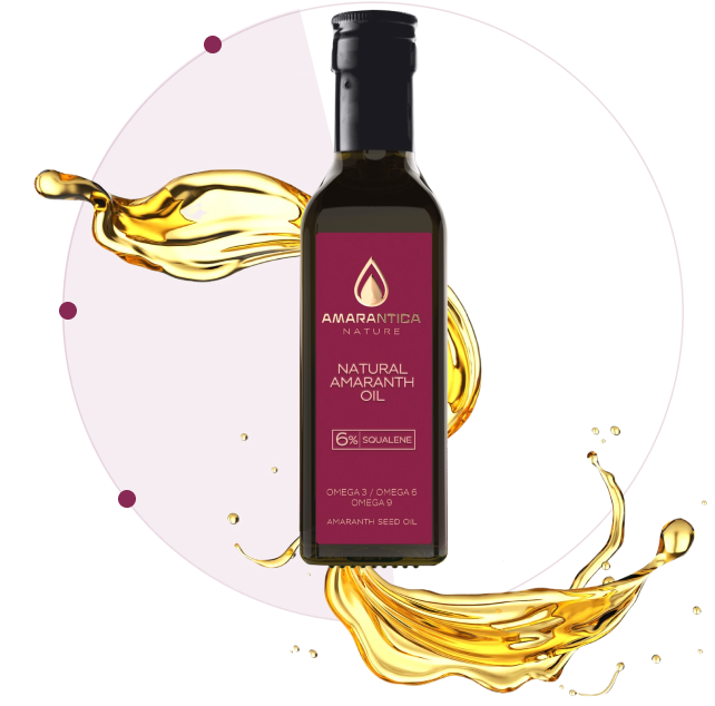 Amaranth oil has Omega 3, 6, 9 and an essential biologically active substance-squalene. Moreover it helps to fight against chronic inflammationin our bodies.